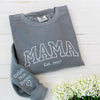Custom Mama Embroidered Sweatshirt, Curved Neckline Mama Sweatshirt, Personalized Mom Embroidered Sweatshirt, Pregnancy Announcement